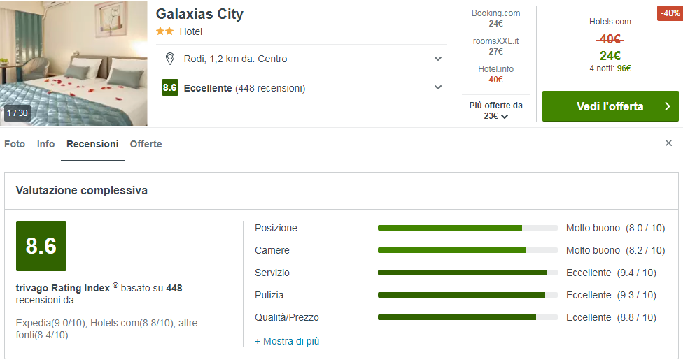 Ti proponiamo questa combinazione fai da te di volo + hotel per 2 persone, in date 10-14 Aprile, ad un prezzo assolutamente eccezionale! Il prezzo comprende il costo del volo di €50 a testa e del pernotto, presso la struttura Galaxias City,a soli €48 a testa per 4 notti, grazie allo sconto del 40% trovato!
