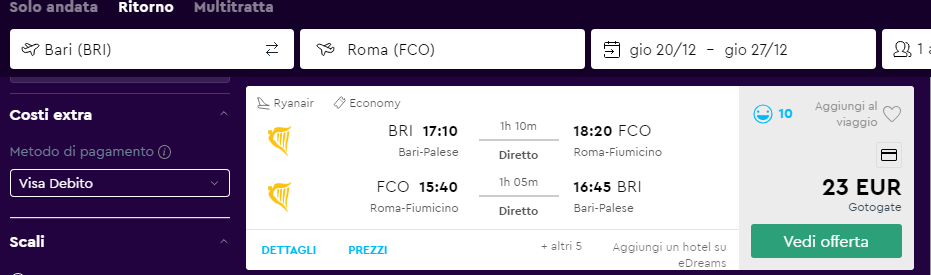 In cerca dell’occasione per tornare a casa durante le festività Natalizie? Ecco un buon prezzo! Vola low cost da Bari a Roma e viceversa da soli €23 a/r!