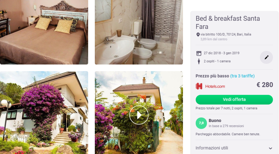Se hai deciso di trascorrere il Capodanno in Puglia, a Bari ti suggeriamo l’ottimo B&B Santa Fara con recensioni ottime su Tripadvisor (4/5) ed al prezzo di €40/notte per camera doppia durante Capodanno.