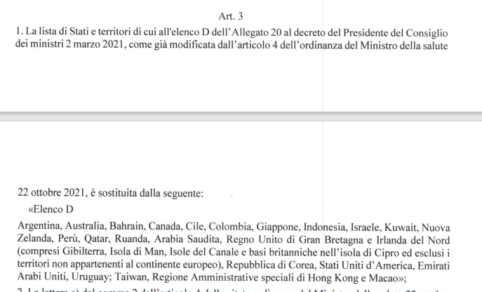 L’Ordinanza prevede anche una modifica alla Lista D (la quale comprende i paesi extra-UE verso i quali è consentito viaggiare per motivi turistici partendo dall’Italia) e dai quali al rientro non è richiesta la quarantena. Nella foto in basso potrete consultare la nuova Lista D dalla quale è stata esclusa la Giordania (viaggi non più concessi per turismo) mentre sono state inserite Argentina, Colombia, Perù e Indonesia.