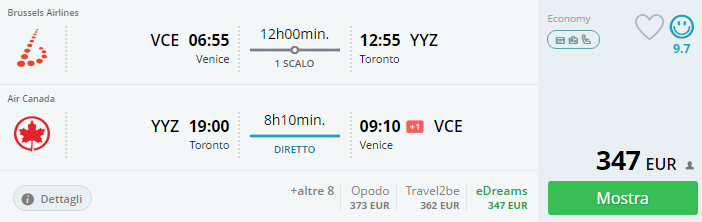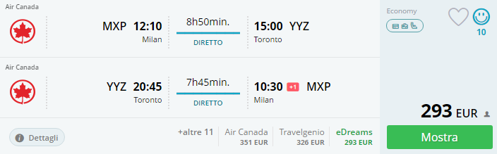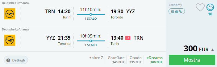 Davvero non male volare in Canada con €293 a/r grazie a questa offerta per Toronto da parte dei membri Star Alliance! Vola da tantissime città in primavera, inizio estate e fine agosto!