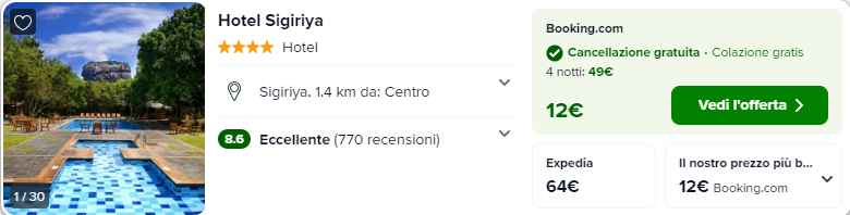 Trascorri le tue notti presso l’ottimo Hotel Sigiriya costerà solamente €12/notte per camera doppia!