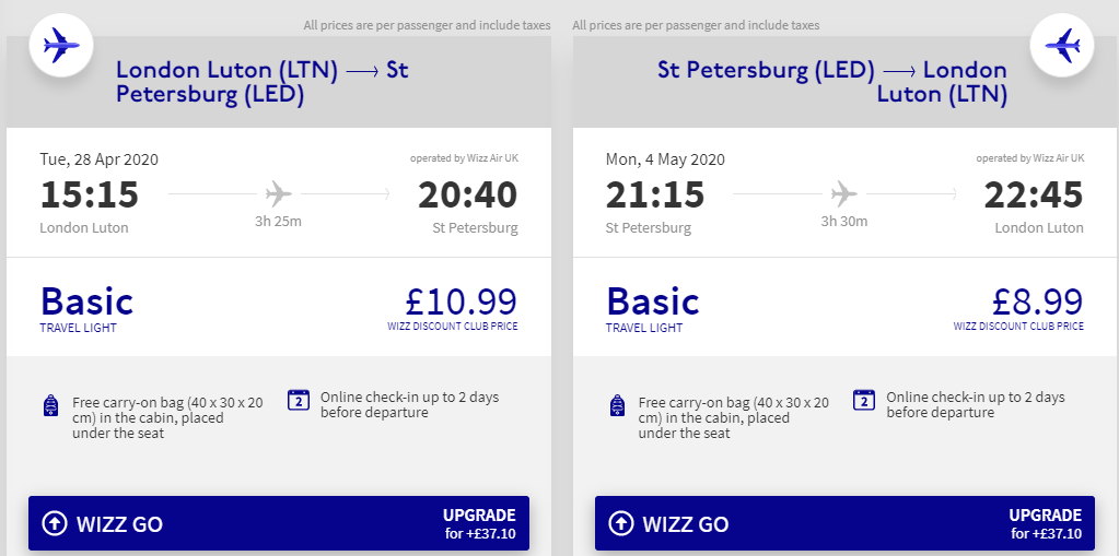 ✈️ Londra LTN – San Pietroburgo, €24 a/r