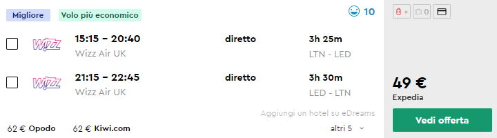 NB. per visualizzare questo prezzo, selezionare il sito Wizzair tra le varie opzioni.
