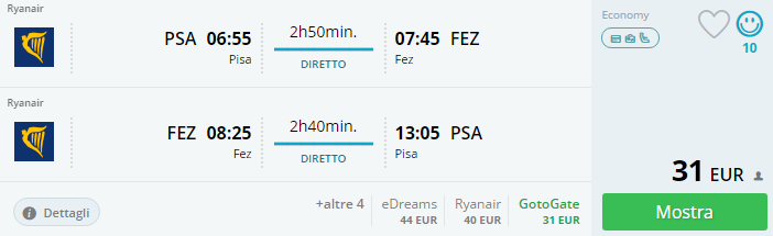 Davvero una bella tariffa Ryanair! Potrai organizzare un viaggio in Marocco low cost grazie a questi voli da Pisa a Fez con tariffe a partire da soli €31 a/r!