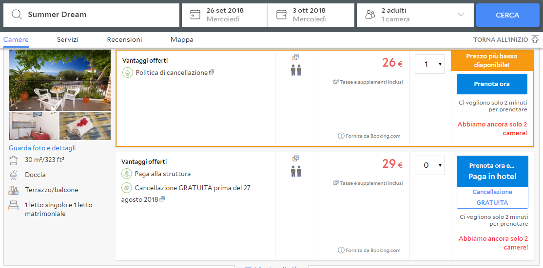 Ti spieghiamo come procedere alla prenotazione: Clicca qui , Musses Studios sarà il primo risultato nella lista di ricerca.  Clicca per selezionarlo e solo in seguito, modifica il numero di adulti nella barra di ricerca da 1 a 2, come nell’immagine sottostante: