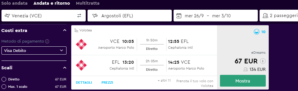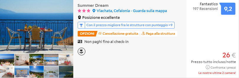 Questa volta vi proponiamo una soluzione davvero low cost per trascorrere 7 giorni di vacanza a Cefalonia! Con soli €167 complessivi a testa potrete soggiornare, dal  26 Settembre al 3 Ottobre, in uno studio presso l’eccellente aparthotel Summer Dream, con recensioni ottime su Tripadvisor (4/5)! Il prezzo del volo è di soli €67 a testa mentre l’alloggio per 2 persone costa €26 a notte.