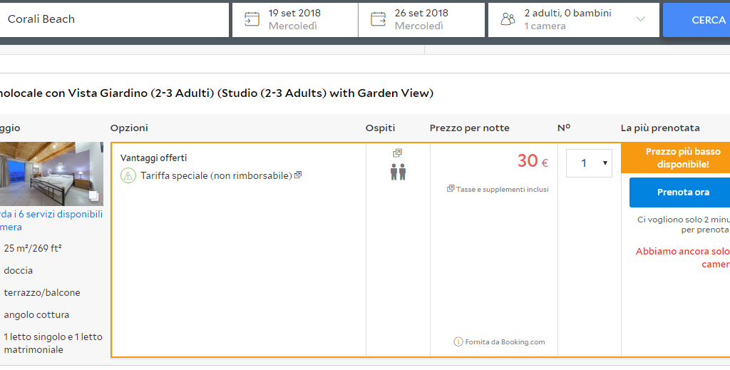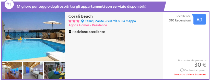 Sei pronto a prenotare la tua vacanza a Zante? Ti spieghiamo come procedere alla prenotazione! Clicca qui,Corali Beach sarà il primo risultato nella lista di ricerca. Clicca per selezionarlo e solo in seguito, modifica il numero di adulti nella barra di ricerca da 1 a 2, come nell’immagine sottostante: