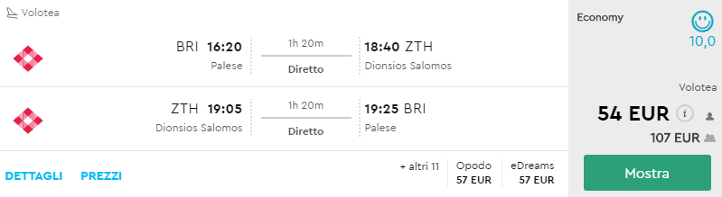 La settimana presa in considerazione va dal 19 al 26 Settembre, con voli Bari-Zante da €54 a/r. Per il pernotto, suggeriamo il buon Corali Beach, con recensioni ottime su Tripadvisor (4/5) ed un prezzo di soli €30/notte per uno studio per 2 persone. Il prezzo finale sarà quindi di €159 a testa!