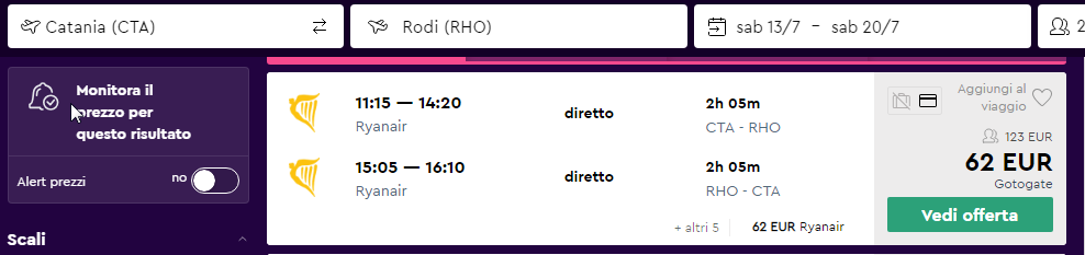 ✈ Catania – Rodi a/r