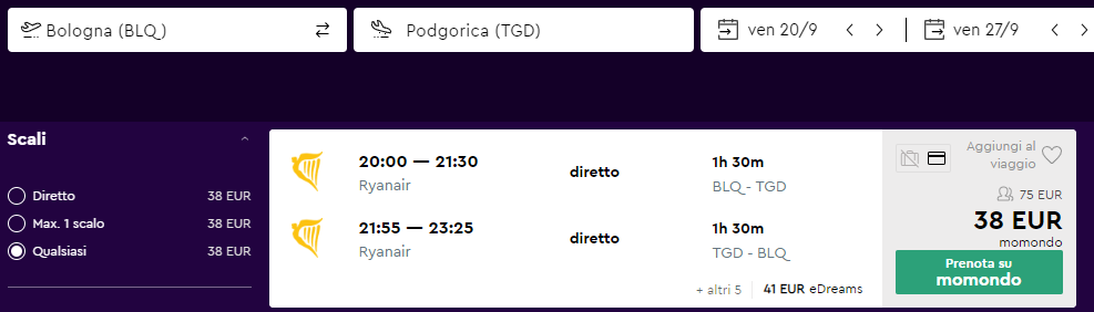 Prenotando separatamente il volo Ryanair da Bologna a €38 a/r a testa, nella settimana 20-27 Settembre, ed il soggiorno presso un’ottima struttura con recensioni impeccabili al prezzo di soli €15/notte per una camera doppia, Blue Star Apartments. Il prezzo finale sarà di soli €90 a testa (€52,5 pernotto + €38 volo)!