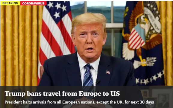 In seguito all’emergenza mondiale coronavirus, alle ore 2:20 di questa notte il Presidente degli Stati Uniti d’America Donald Trump ha annunciato ufficialmente la sospensione degli ingressi dei viaggiatori europei della zona Schengen (escluso momentaneamente il Regno Unito).