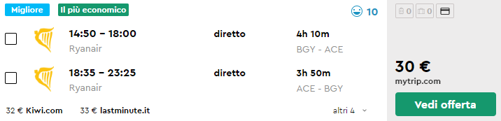 Alternative low cost: Settembre 6-13, 8-15, 15-22, 17-24, 22-29; Ottobre 6-13, 13-20