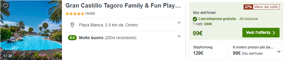 Clicca qui per il pernotto a 5 stelle All-Inclusive ➡️ Gran Castillo Tagoro Family & Fun Playa Blanca (es. 29/09 – 6/10)