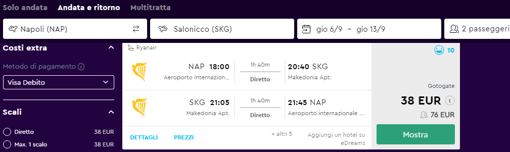 Seguono i link per procedere alla prenotazione separata di voli e pernotto.
