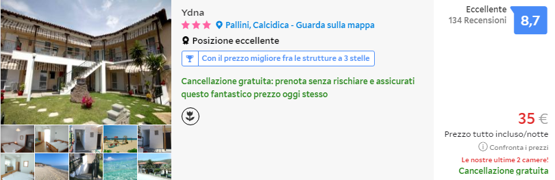 Proponiamo un pacchetto per 2 persone, con voli dal 6 al 13 Settembre a soli €38 a testa. Il prezzo totale di €160,5 a testa è dato dalla somma del costo del volo, €38, e del pernotto presso l’ottima struttura Ydna Apartments, al prezzo di €35 a notte per camera doppia, ovvero €122,5 a testa per 7 notti! La struttura vanta recensioni praticamente perfette su!