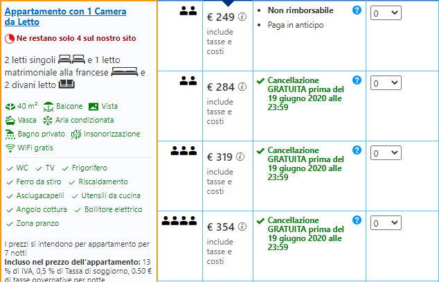 Dopo aver cliccato, potrete selezionare fra le opzioni per 4, 3 o 2 ospiti: