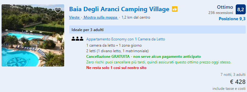 Clicca qui per la tua vacanza➡️ Baia Degli Aranci Camping Village (€61/notte, es. 19-26/09)