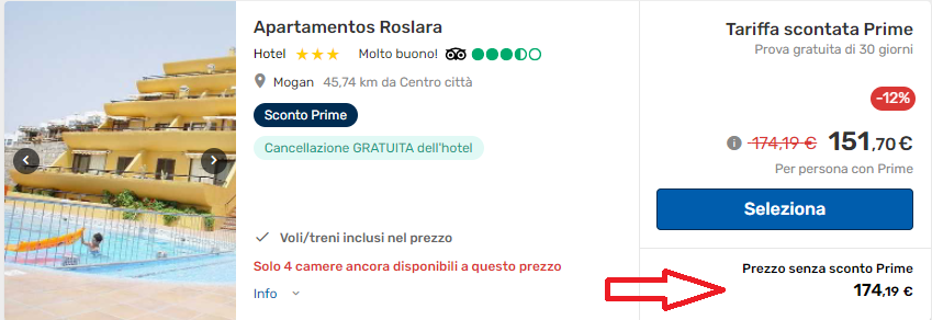 L’offerta prevede un soggiorno di 7 notti presso Apartamentos Roslara by Ura Hotels, una struttura a 3 stelle con buone recensioni e disponibile al costo complessivo di €165 a testa (volo + pernotti). In fase di acquisto potrà anche essere selezionata l’opzione con colazione inclusa.