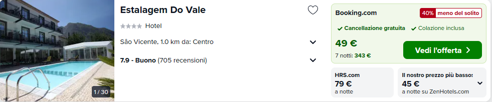 Proponiamo un pacchetto per 2 persone per visitare la bellissima isola portoghese di Madeira! La struttura selezionata è l’ Hotel Estalagem do Vale con ottime recensioni e disponibile al costo di €45/notte per camera doppia con colazione inclusa (€315 per 7 notti, €157,5 a persona).