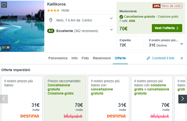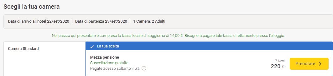 Dopo aver cliccato, noterete l’opzione Mezza pensione (colazione e cena incluse) a €31/notte, ovvero €15,5/notte a persona: