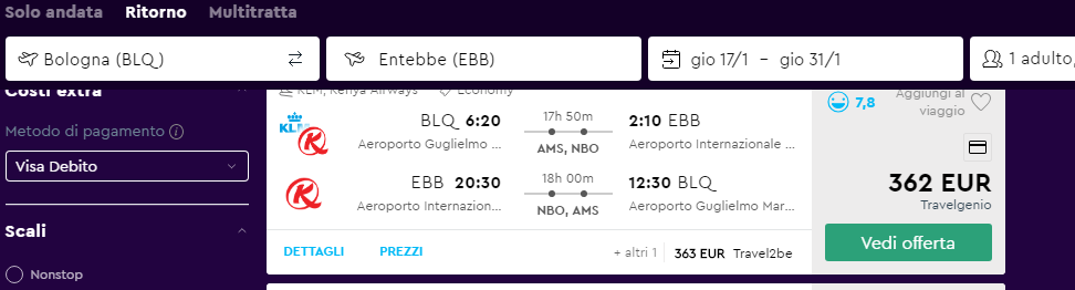 ✈ Bologna – Entebbe a/r