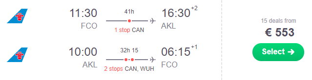 ✈️ Roma – Guangzhou – Auckland a/r