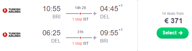 Voli a 4 stelle Turkish Airlines per l’India da Bari a €371 a/r!