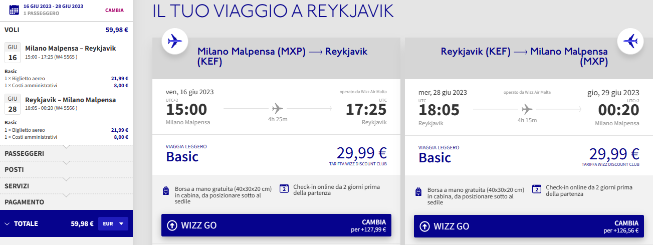 ✈️ Milano – Reykjavik a/r
