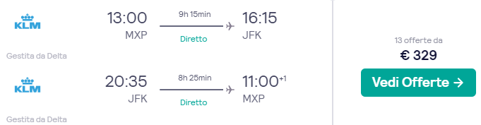 Sfrutta queste tariffe sui voli diretti KLM/Delta per New York da Milano Malpensa! Si vola con soli €329 a/r! (classe Economy Light, solo bagaglio a mano)