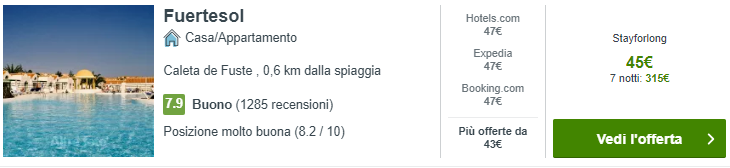 Durante la tua settimana a Fuerteventura, potrai considerare un soggiorno presso la buona struttura Fuertesol con piscina all’aperto ed ottime recensioni!