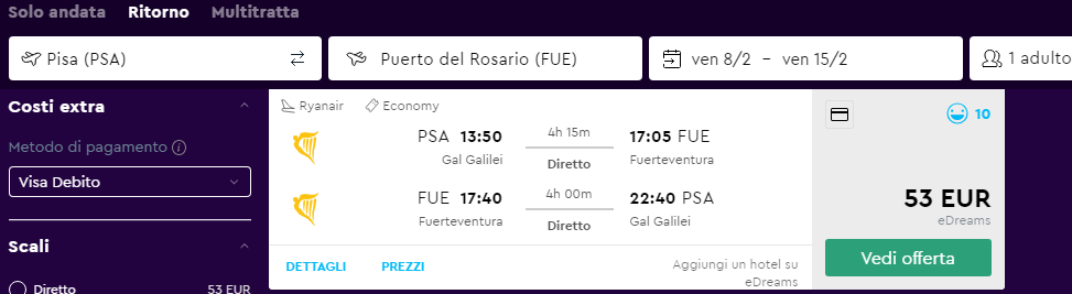Ryanair ha messo in vendita, per il prossimo periodo invernale, dei voli diretti per Fuerteventura da Pisa a soli €53 a/r!