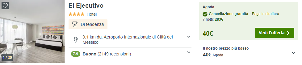 Non appena arrivati a Città del Messico, potreste soggiornare presso l’ottimo hotel 4 stelle El Ejecutivo al costo di €40/notte per camera doppia!