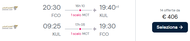Promozione Oman Air 💥 Voli in offerta da Roma per la Malesia a €408 a/r