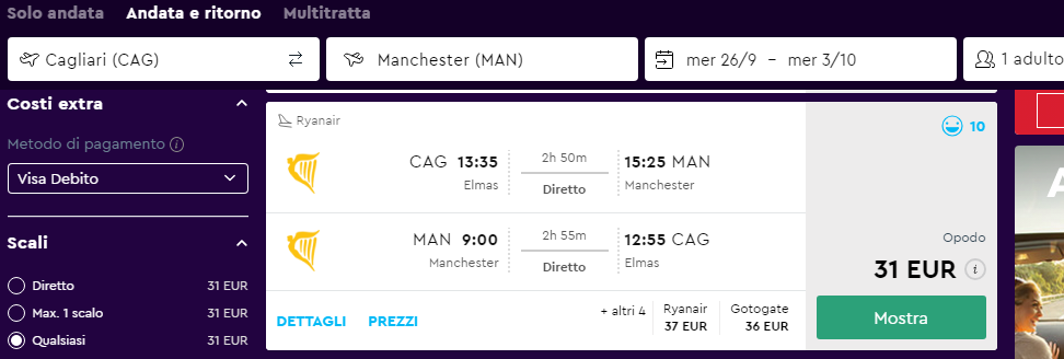 Voli low cost da Cagliari a Manchester a soli €31 a/r!