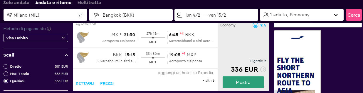 ✈ Milano – Bangkok a/r (scali brevi in Oman)