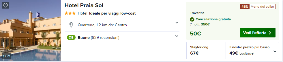 Dove soggiornare a Luglio? Vi consigliamo l’ottimo Hotel Praia Sol disponibile a soli €49/notte con cancellazione gratuita! (prenotazione da 2 ospiti)