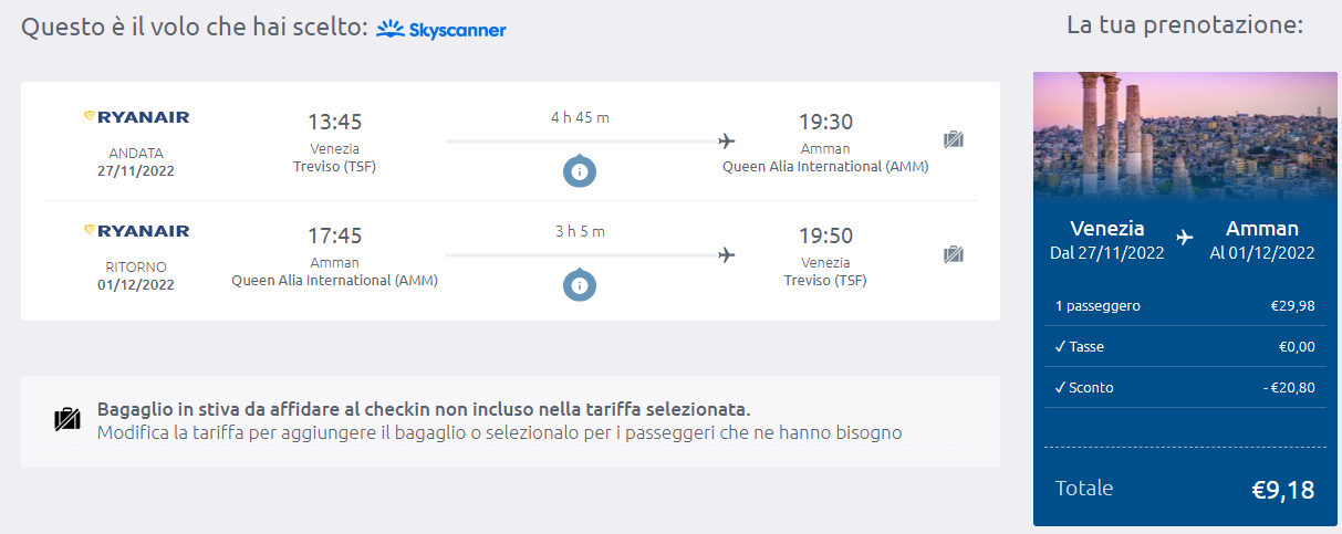 Sono finalmente tornate le straordinarie tariffe Ryanair per Amman! Ecco a voi 2 rotte low cost a partire da soli €9 A/R!