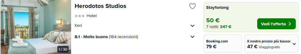 Per il vostro soggiorno a Zante vi consigliamo l’ottimo Herodotos Studios disponibile a soli €47/notte.