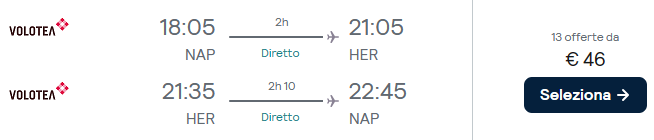 📅 Rotte e date low cost disponibili da €46 a €76 a/r: