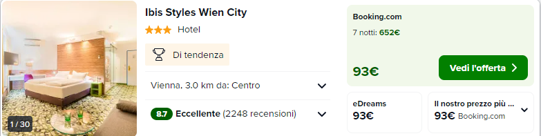Vi consigliamo l’hotel TIbis Styles Wien City, con recensioni eccellenti e ottima posizione! (es. per camera doppia)