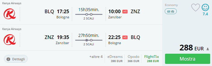 Che prezzo! Voli low cost per Zanzibar da Bologna grazie a questa offerta da parte di Kenya Airways! Parti con solo €288 a/r!