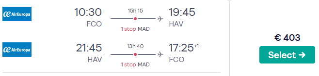 Roma – Havana  a/r (es. Natale)