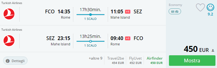 Vola alle Seychelles grazie a questa tariffa invitante della quadristellata (Skytrax) Turkish Airlines! Scopri un paradiso in terra da tanti aeroporti italiani ed a partire da €450!