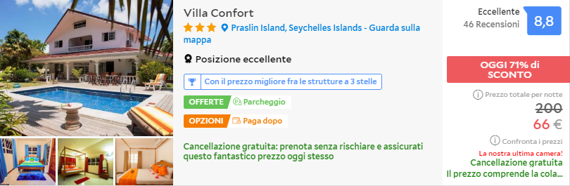 Durante la tua vacanza alle Seychelles potrai soggiornare presso l’ottima Villa Confort !