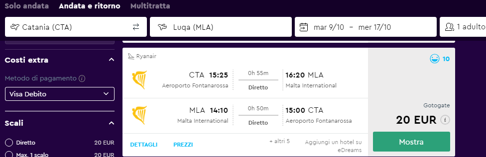 Un’ottima tariffa per i viaggiatori siciliani offerta da Ryanair! Potrai volare da Catania a Malta con soli €20 a/r!