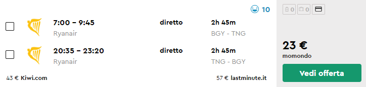 Bergamo – Tangeri a/r
