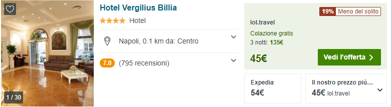 A Napoli potreste optare per l’ottimo Hotel Vergilius Billia, un hotel a 4 stelle situato nel centro storico, a soli 200 metri dalla stazione centrale e a 10 minuti di autobus dal porto.