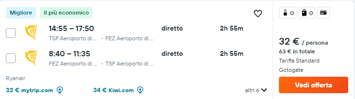 Abbiamo messo insieme per voi un pacchetto low cost per 2 persone, valido nei mesi invernali di gennaio e febbraio. Il costo finale, indicato nel titolo, di €108 a testa è dato dalla somma del costo del volo, €32 a/r, e del pernotto con colazione inclusa presso la struttura Riad Au 20 Jasmins di €69 a testa (€138/2 per 3 notti).