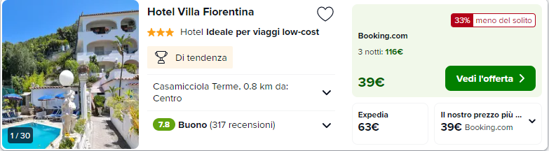 Come mostrato sopra, il costo minimo per una prenotazione da 2 ospiti è di soli €39/notte con colazione inclusa.